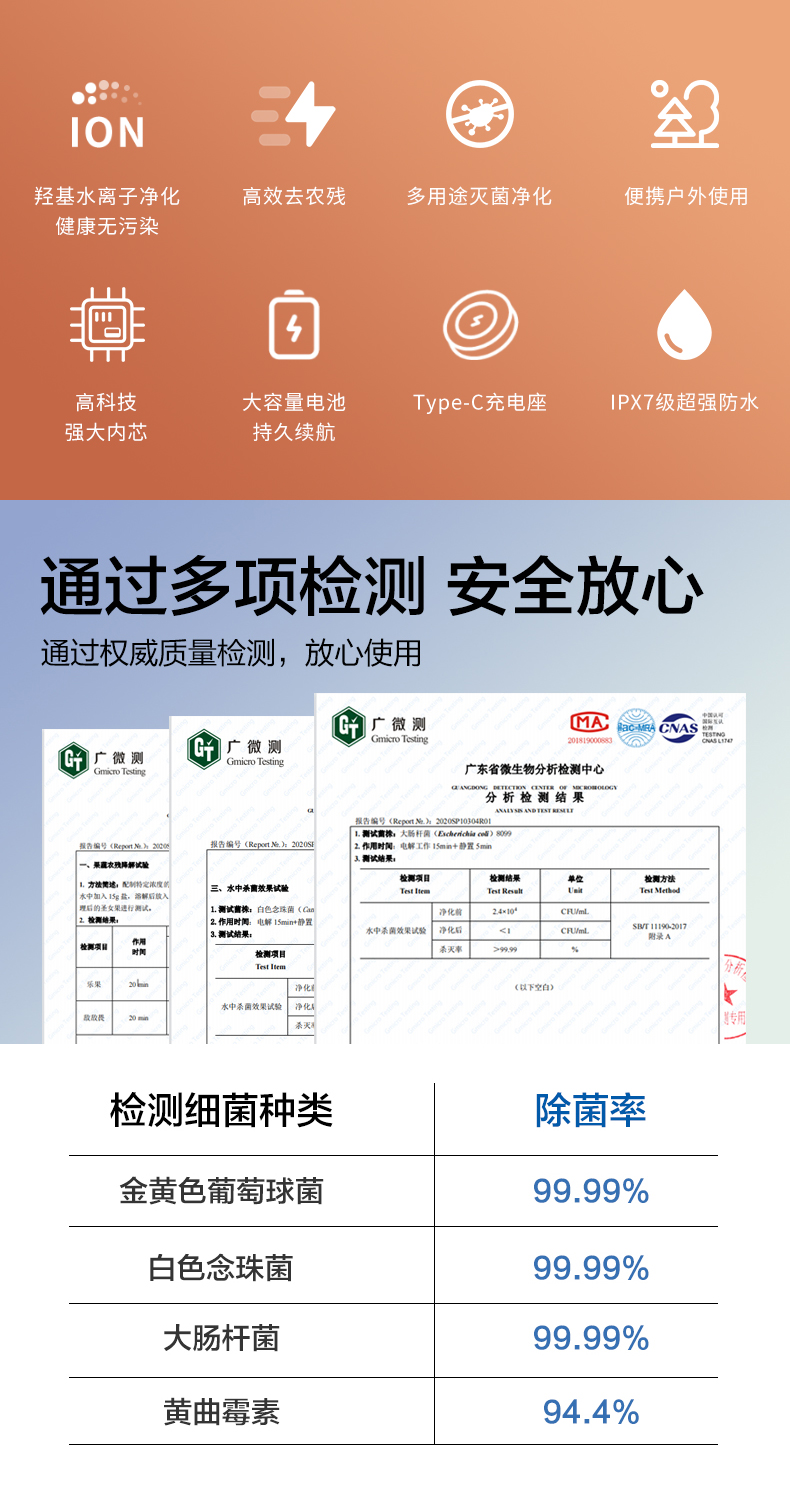 專業高效:采用羥基水離子淨化技術,以水作為原料,形成羥基自由基等氧化性物質,對金黃色葡萄球菌,大腸杆菌,白色念球菌等的滅殺率高達99.9%,無需任何化學添加劑,安全高效。